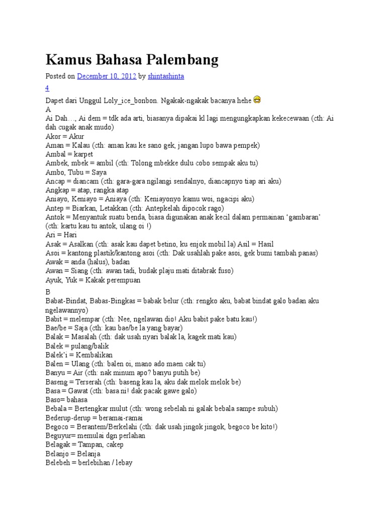 Kamus Bahasa Jambi Lengkap Cantik Sampai Terima Kasih from www.jambiseru.com We did not find results for: Maybe you would like to learn more about one of these? Check spelling or type a new query. Translate bahasa palembang dan artinya.